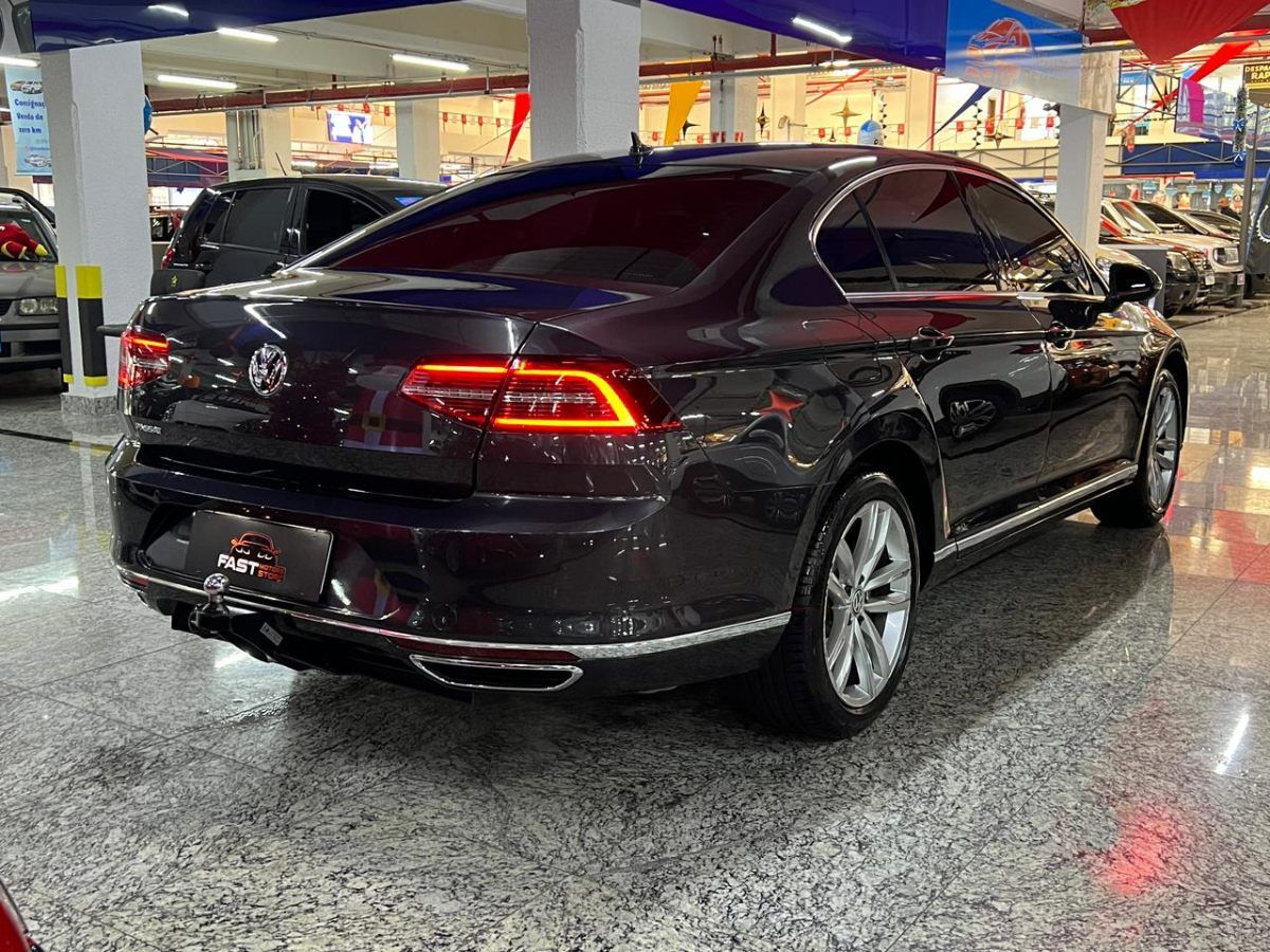 Volkswagen Passat Highline TSI Automático com motor 2.0 turbo. Possui ar-condicionado digital dual zone, direção elétrica, vidros e travas elétricos, bancos em couro com ajuste elétrico e memória. Central multimídia com Bluetooth, USB, GPS, Android Auto e Apple CarPlay. Equipado com airbags, controle de estabilidade e rodas de liga leve aro 18.