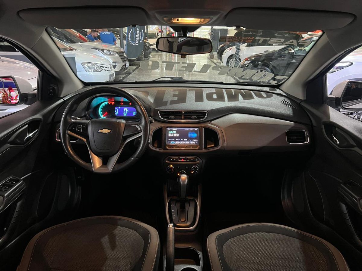 O Prisma 1.4 LTZ Automático 2014 vem bem equipado, com direção hidráulica, vidros elétricos nas 4 portas, ar-condicionado, multimídia MyLink com tela de 7 polegadas, rodas de liga leve aro 15, faróis de neblina e câmbio automático de 6 marchas. Também conta com ABS, airbag, sensor de estacionamento traseiro e alarme. É um sedã dos mais bem avaliados do mercado nacional. Aceitamos o seu usado como pagamento e o financiamento pode chegar em até 60x. Parcelamos a entrada no cartão.